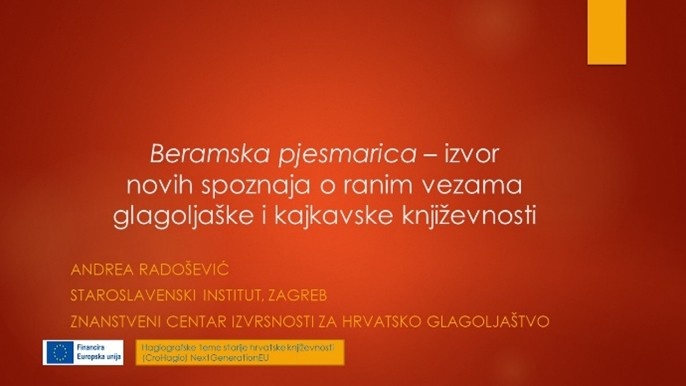 U povodu 450. obljetnice kajkavskog Prvotiska (Ivan Pergošić, Decretum, 1574.) u Varaždinu i Ludbregu od 23. do 25. svibnja 2024. godine održan je znanstveni skup Četiri i pol stoljeća kajkavske pismenosti u organizaciji Zavod za lingvistička istraživanja HAZU iz Zagreba i Zavoda za znanstveni rad HAZU u Varaždinu. O rezultatima nedavnih istraživanja koja donose nove spoznaje o povezanosti glagoljaške i kajkavske književnosti govorila je Andrea Radošević koja je održala izlaganje Beramska pjesmarica – izvor novih spoznaja o ranim vezama glagoljaške i kajkavske književnosti.