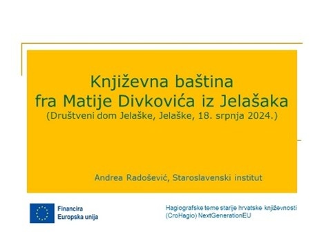 Andrea Radošević održala je 9. ožujka 2024. predavanje Književna baština fra Matije Divkovića u Pučkome otvorenom učilištu Velika Gorica na poziv Udruge fra Matija Divković, koja je sa Župom Uzvišenja svetoga Križa Jelaške (BiH) organizirala prve Zavičajne susrete Jelašana.