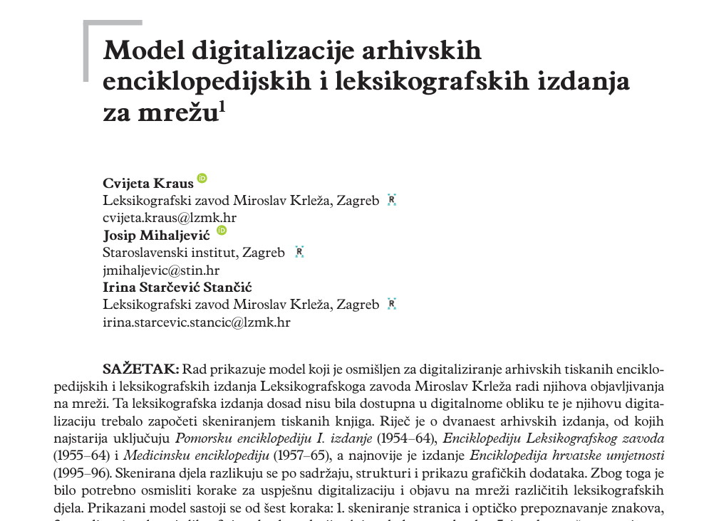 U časopisu Studia lexicographica objavljen je rac našega znanstvenika Josipa Mihaljević u suautorstvu s Cvijetom Kraus i Irenom Starčević Stančić iz Leksikografskoga zavoda Miroslav Krleža pod naslovom Model digitalizacije arhivskih enciklopedijskih i leksikografskih izdanja za mrežu. Rad je dostupan na poveznici: https://hrcak.srce.hr/clanak/470263.