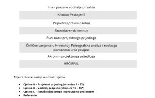 Projekt Hrvatska ćirilična baština usmjeren je na stvaranje digitaliziranog korpusa kao temelja za buduća istraživanja i razvoj novih projekata. Cilj je izgraditi otvoreni digitalni repozitorij s digitalnim reprodukcijama građe i metapodatkovnim opisima (Open Science), uz poštivanje vlasničkih prava imatelja (arhiva, muzeja, drugih institucija, privatnih zbirka). Projekt uključuje modeliranje bibliografskih opisa, razvoj aplikacijskog profila za ćirilične dokumente i unos podataka u bazu. Ove aktivnosti provode se u Staroslavenskom institutu u Zagrebu i Centru za istraživanje glagoljaštva Sveučilišta u Zadru (GlagoLab).